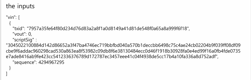 - 인풋은 전 거래의 id와 인덱스, 그리고 스크립트펍키를 열수있는 개인키의 공개키와 그 서명으로 돼있는 스크립트시그로 돼있다고 이해했다.